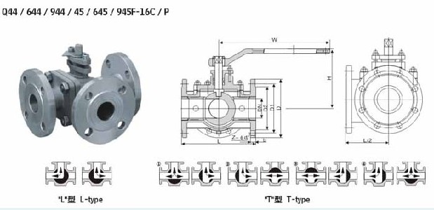 三通法蘭球閥主要外形和連接尺寸單位(mm):